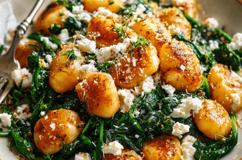 Crispy gnocchi with spinach and feta showcases how simple ingredients can create an extraordinary meal. The interplay of textures and flavors makes it incredibly satisfying.