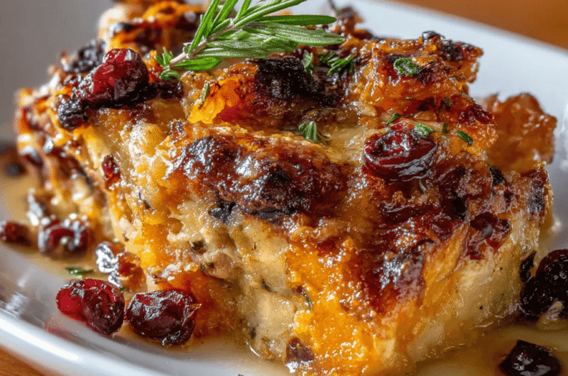 The rich, buttery layers layered with seasonal fruits provide not just a treat for the palate, but also for the eyes. The vibrant orange of sweet potatoes plays beautifully against the deep red of cranberries, creating a stunning presentation. This dish can elevate your holiday dining experience or serve as comfort food on a cozy evening at home.
