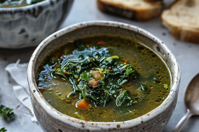 The variety of greens provides a spectrum of flavors and textures, making the soup robust and vibrant. Each green adds its unique nutritional benefits. - 4 cups vegetable or chicken stock