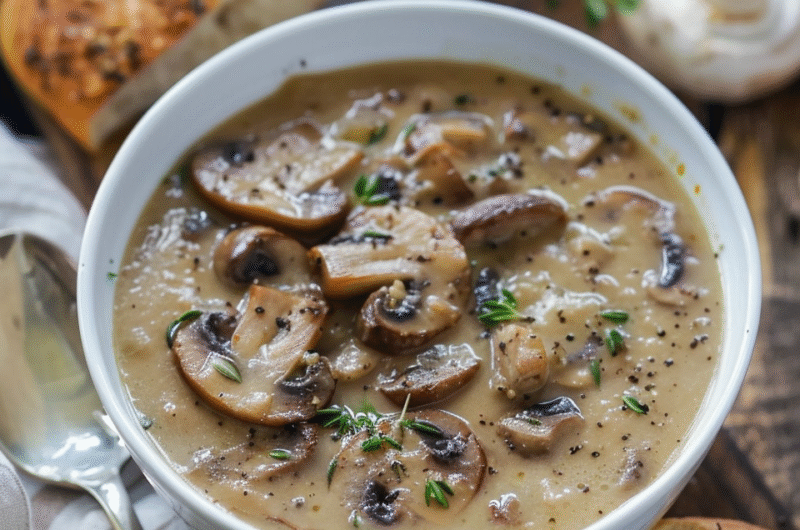 Hearty Slow Cooker Mushroom Soup with Sherry