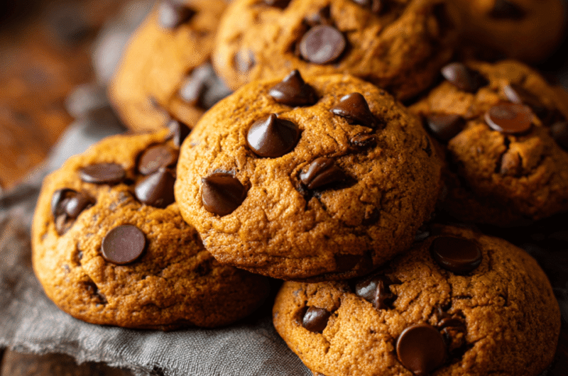 Chocolate chips provide delightful bursts of sweetness and creaminess, complementing the pumpkin while adding a contrasting texture to the soft cookies.
