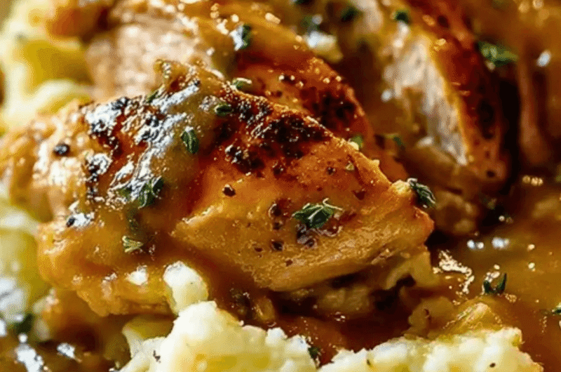 Savory Chicken and Garlic Gravy with Cheesy Mashed Potatoes